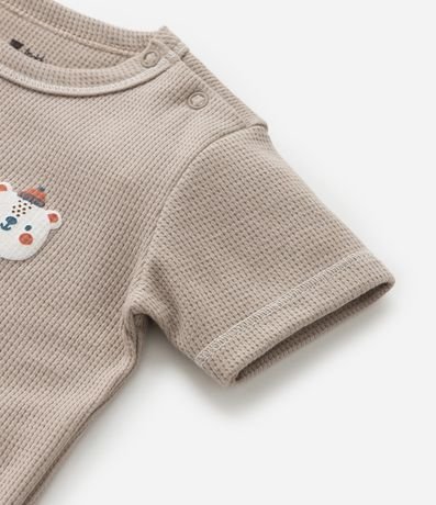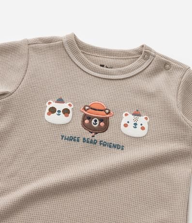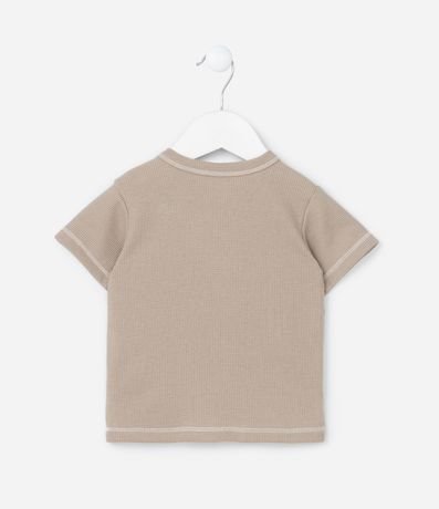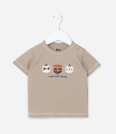 Ref: Camiseta infantil com gola redonda, mangas curtas e estampa de bichinhos. A peça é confeccionada com boas práticas ambientais e algodão certificado bci.