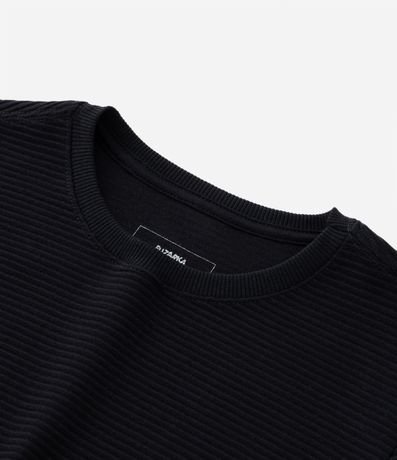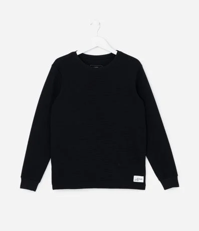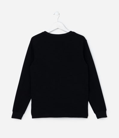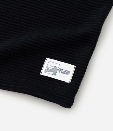 Ref: Camiseta infantil confeccionada em algodão, com gola redonda, mangas longas e textura. Possui etiqueta na barra da peça com lettering "Exploring the mountains".