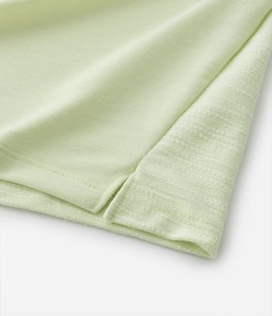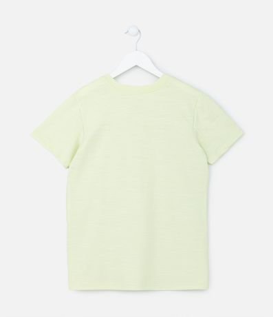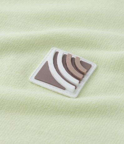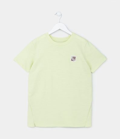 Ref: Camiseta infantil confeccionada em algodão mais sustentavel, com gola redonda, mangas curtas e detalhe de etiqueta emborrachada no peito. Possui fendas na barra e textura.