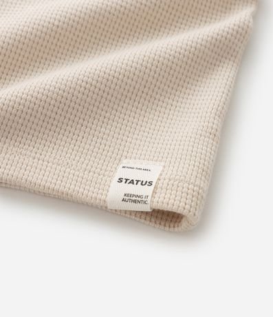 A camiseta infantil com modelo regular é confeccionada em algodão certificado BCI e boas práticas ambientais. Possui gola redonda, mangas curtas e superfície texturizada dupla, oferecendo toque macio e estrutura leve.