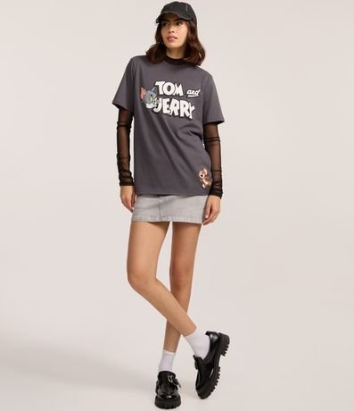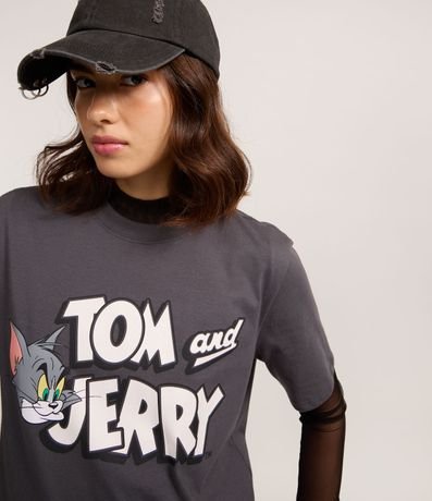 Camiseta Manga Curta em Algodão com Estampa Tom e Jerry
