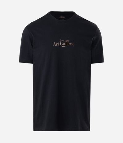 Ref: Camiseta masculina, confeccionada em algodão, gola redonda, manga curta. Peça com lettering Art Gallerie.