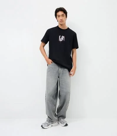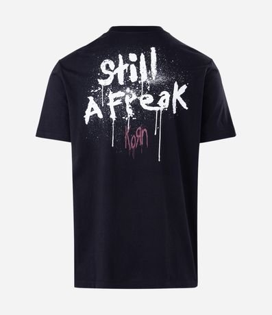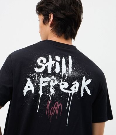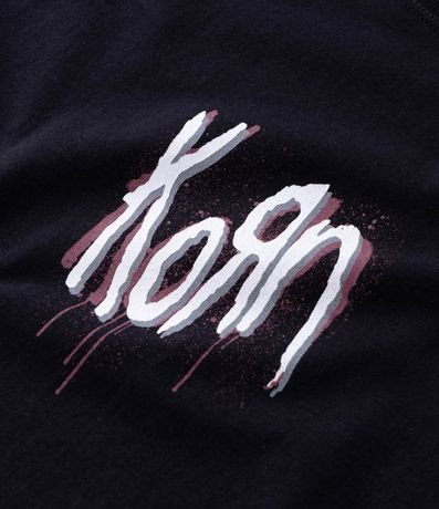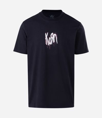 Camiseta masculina confeccionada em algodão mais sustentável, no modelo comfort. Possui gola redonda, manga curta, estampa lettering "Korn" frontais e traseiras.