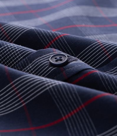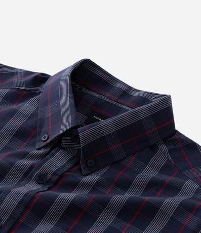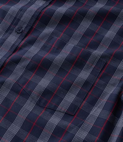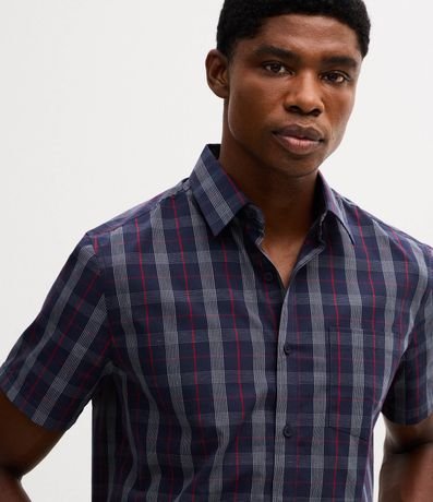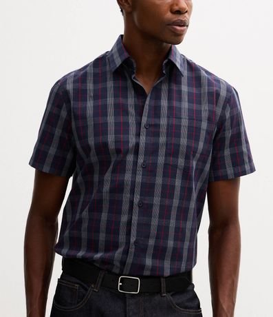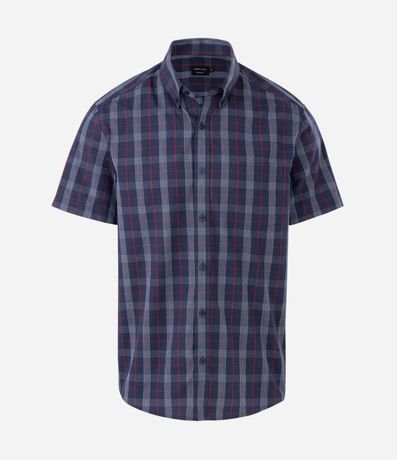 Camisa masculina confeccionada em tricoline mais sustentável, possui gola colarinho, manga curta, abotoamento frontal e estampa xadrez.