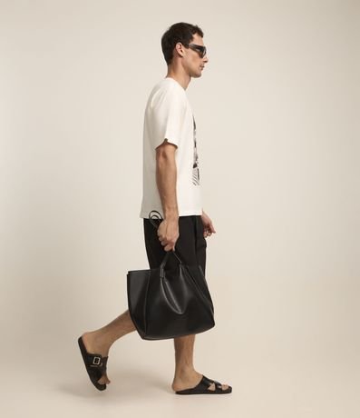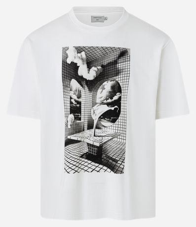 Ref: Camiseta masculina confeccionada em algodão mais sustentável, gola redonda, manga curta. Peça no modelo comfort com estampa surrealismo.