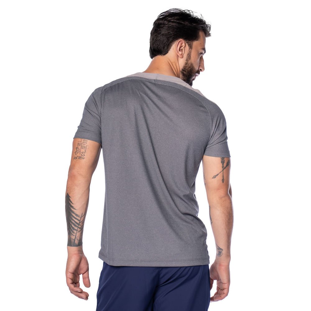 Diferencial: Detalhe nos ombros com microfuros de respirabilidade e logo centralizado em cinza