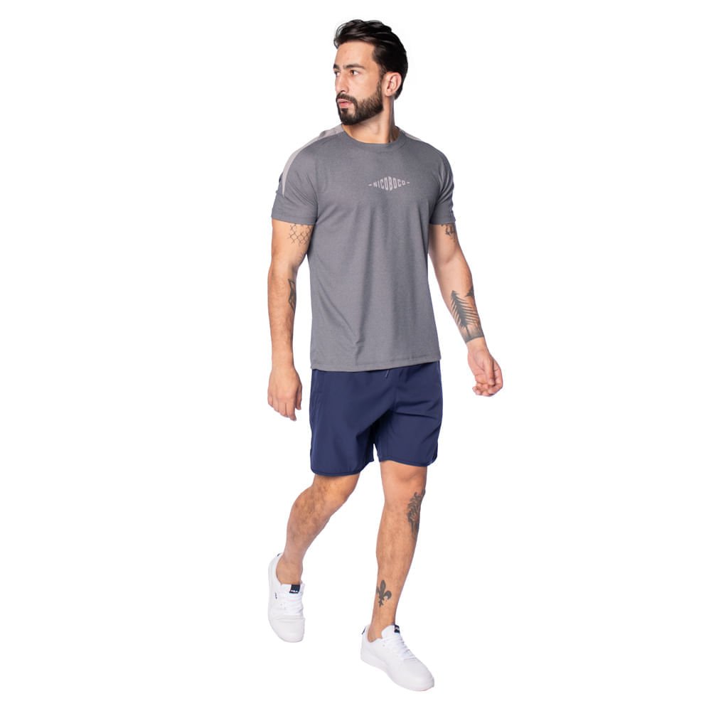 Camiseta Masculina Nicoboco Slim Fit Detalhe Ombros Cinza