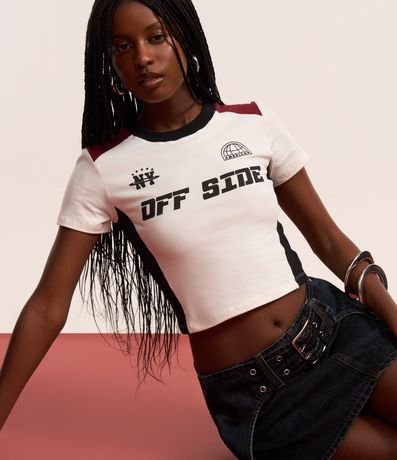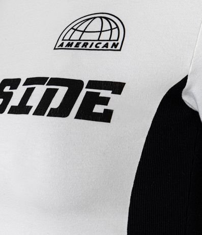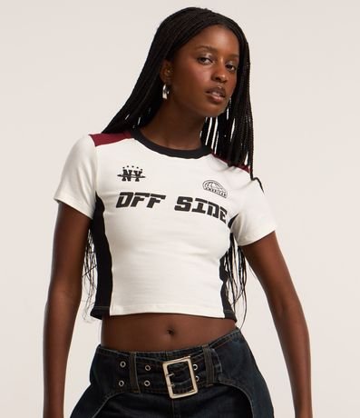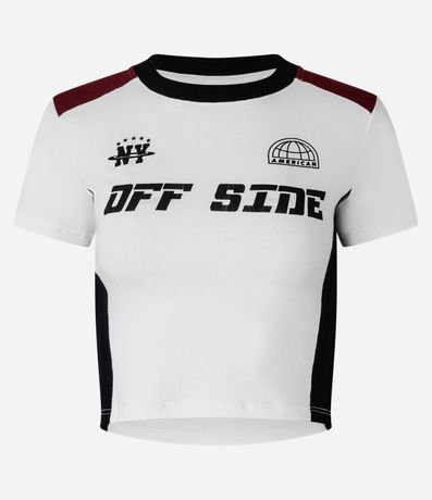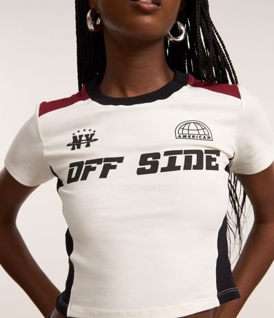 Ref: Camiseta new t-shirt de mangas curtas, confeccionada em algodão, com gola redonda e blocos de cores em contrastes nas laterais e nos ombros. Peça tem lettering Off Side estampados no peito. Este produto possui algodão certificado BCI em sua composição, sendo ambientalmente mais responsável.