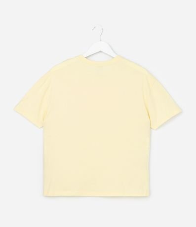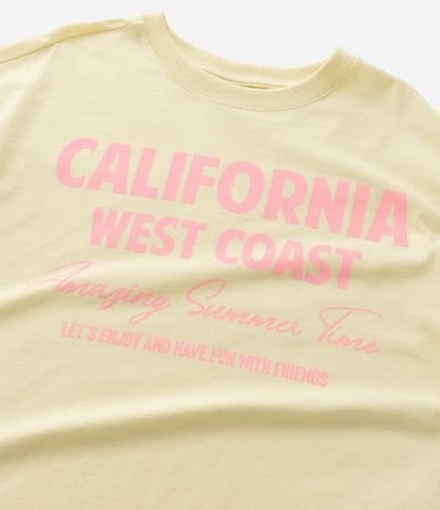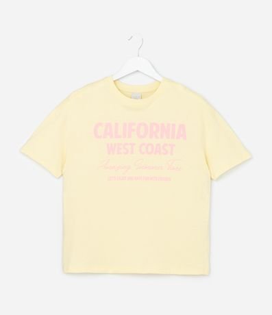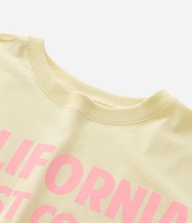 Ref: Camiseta infantil confeccionada em algodão mais sustentável através de boas práticas ambientais, no modelo over. Possui gola redonda, manga curta e estampa lettering "California".