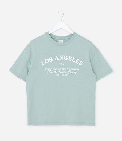 Camiseta Over Infantil com Estampa Letterng Los Angeles - Tam 7 a 16 Anos