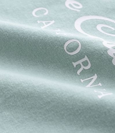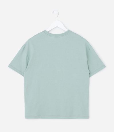 Camiseta infantil confeccionada em algodão mais sustentável através de boas práticas ambientais, no modelo over. Possui gola redonda, manga curta e estampa lettering "Los Angeles".