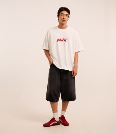 Ref: Camiseta masculina confeccionada em algodão mais sustentável, gola redonda, manga curta. Peça em malhão mais quentinha com estampa de esqueleto nas costas.