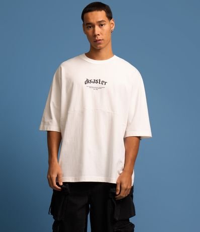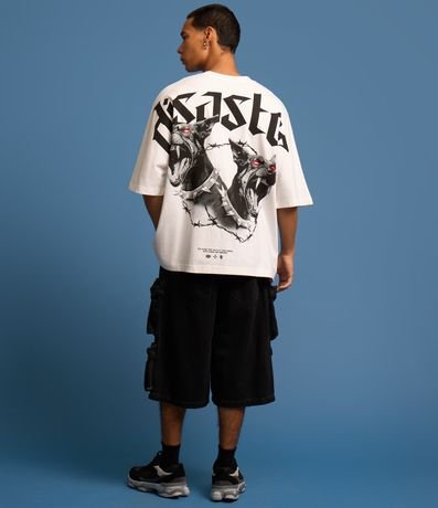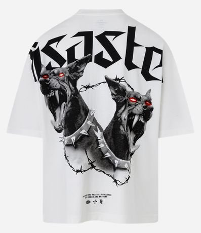 Ref: Camiseta masculina, confeccionada em malhão mais sustentável, gola redonda, manga curta. Peça no modelo overboxy com estampa de dogs disaster.
