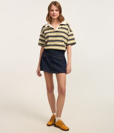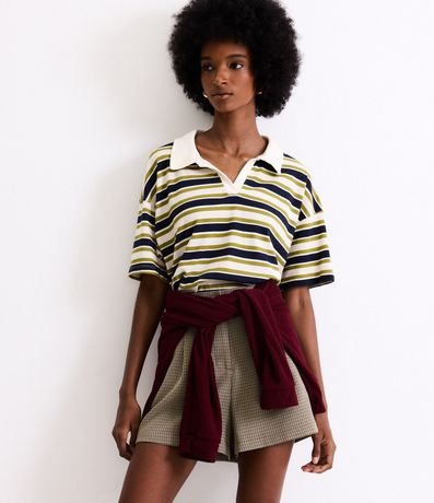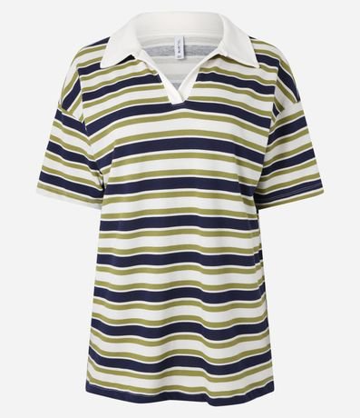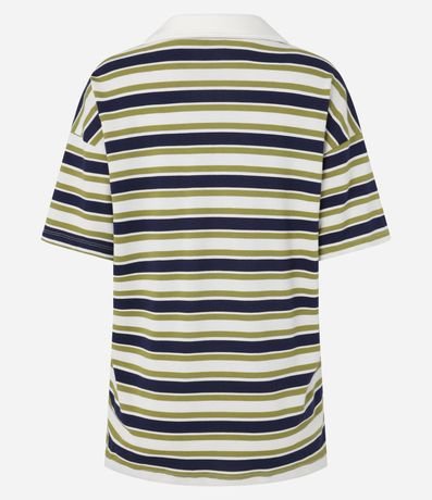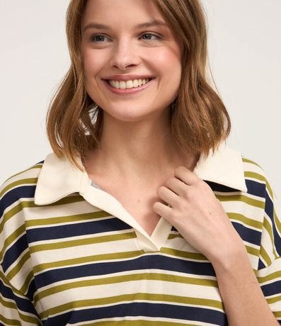 Ref: Camiseta oversized, boxy com gola polo, confeccionada em algodão mais sustentável e listras.