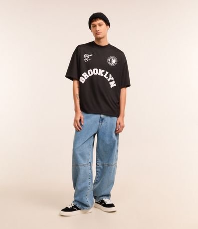 Camiseta masculina confeccionada em poliéster mais sustentável, no modelo oversized. Possui gola redonda, manga curta, estampa localizada e lettering Notorious BIG.