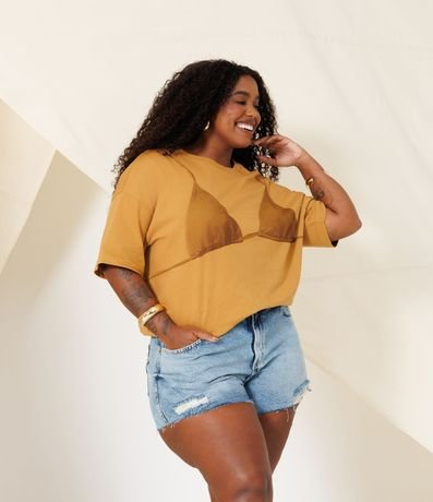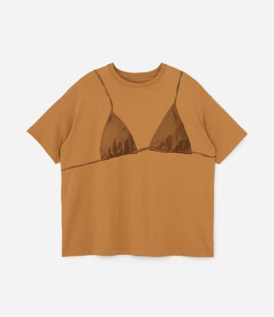 Ref: Camiseta feminina confeccionada em meia malha de algodão, com modelagem oversized e gola redonda. Possui estampa photoprint de biquini localizada na parte frontal, trazendo um toque moderno e divertido ao visual. Peça confortável e versátil, confeccionada em algodão de certificado BCI.