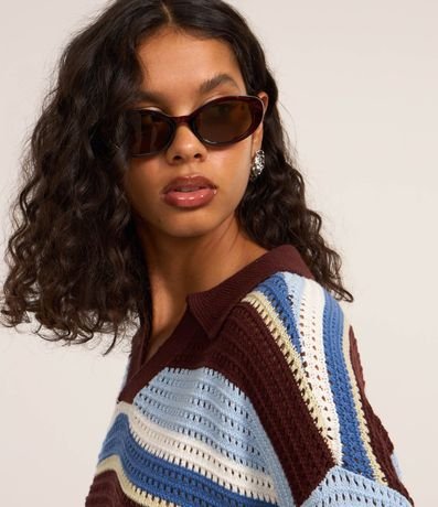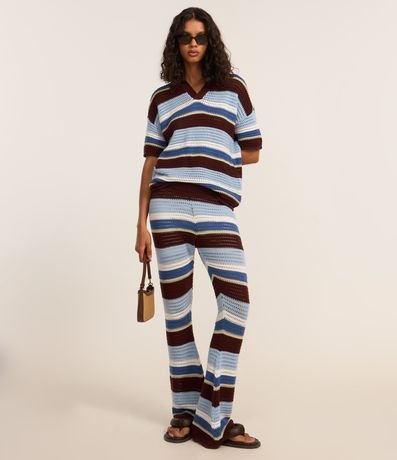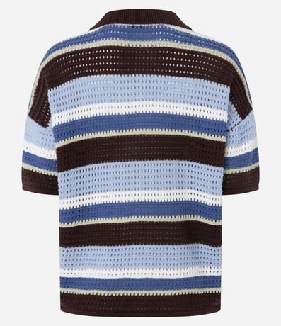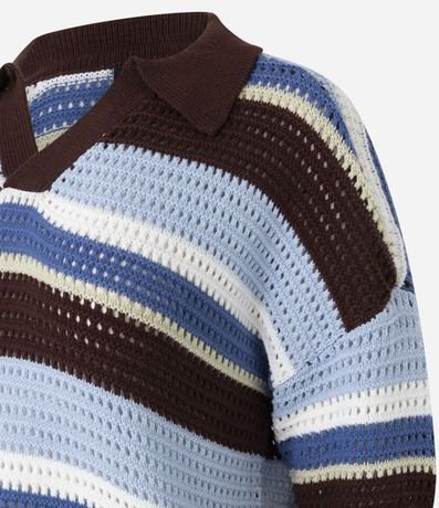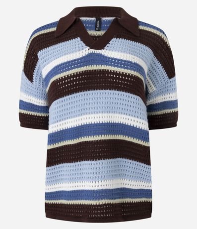 Camiseta Oversized de Tricô Listrado e Gola Polo