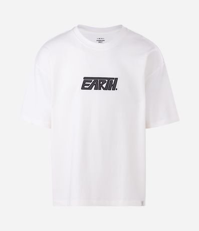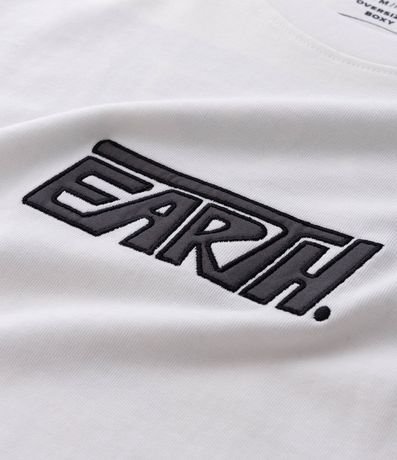 Camiseta oversized em algodão com bordado de letras Earth na frente e nas costas, trazendo estilo marcante ao visual. O modelo de manga curta oferece conforto e caimento amplo para composições urbanas e modernas, confeccionado em algodão de certificado BCI.