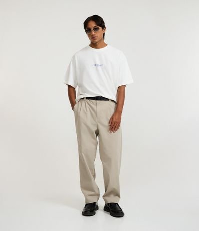 Ref: Camiseta masculina confeccionada em algodão mais sustentável através de boas práticas ambientais, no modelo oversized. Possui gola redonda, manga curta e estampa lettering Artsy renacentista.