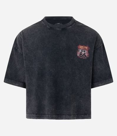 Camiseta Oversized em Algodão com Estampa de Placas Marmorizada