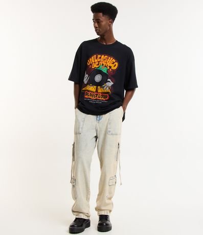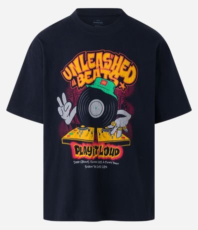 Ref: Camiseta oversized, manga curta, confeccionada em algodão e estampa frente e costas, disco com lettering Unleashed Beats.