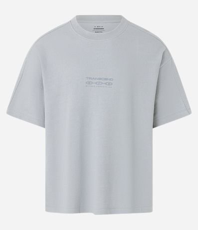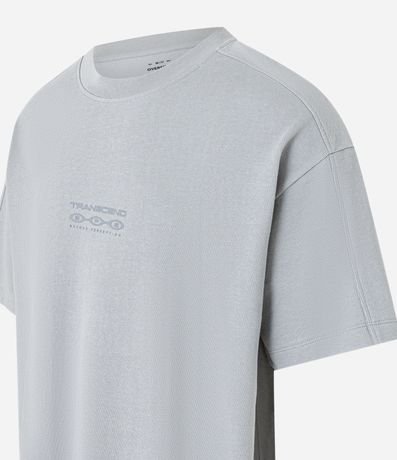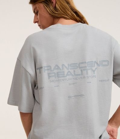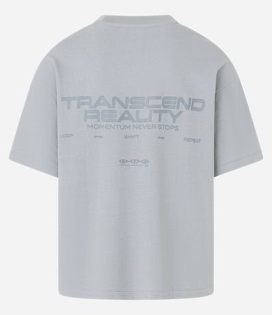 Ref: Camiseta masculina confeccionada em algodão mais sustentável, no modelo oversized. Possui gola redonda, manga curta, estampa lettering "Transcend" e estonada.