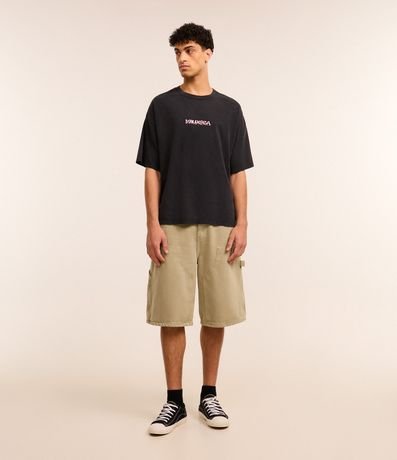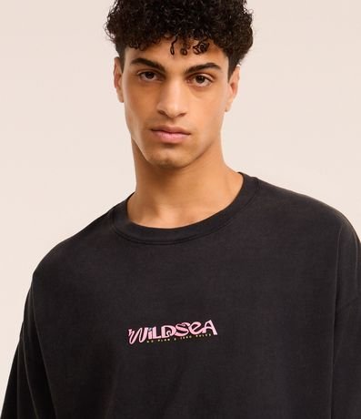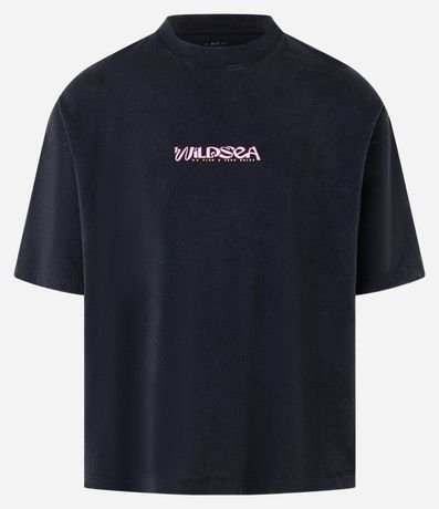 Camiseta masculina confeccionada em algodão mais sustentável através de boas práticas ambientais, no modelo oversized. Possui gola redonda, manga curta e estampa lettering "Wild sea".