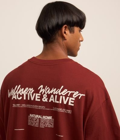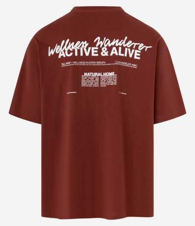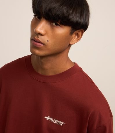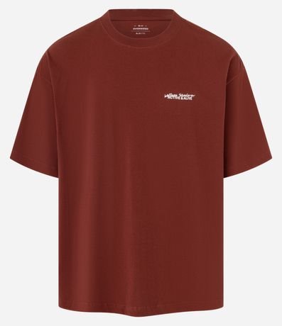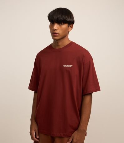 Ref: Camiseta masculina confeccionada em algodão mais sustentável, com gola redonda, manga curta. Peça no modelo oversized com estampa lettering.