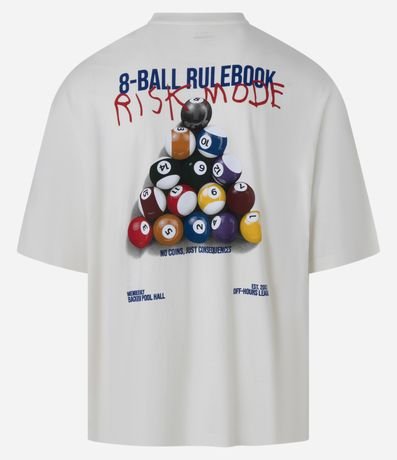 Ref: Camiseta masculina oversized é a escolha ideal para quem busca estilo com modelagem ampla, gola redonda e mangas curtas, a peça traz estampa lettering inspirada no universo da sinuca.