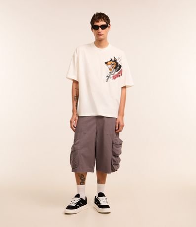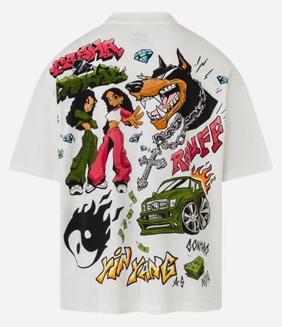 Camiseta t-shirt oversized de mangas curtas, confeccionada em algodão, com gola redonda e estampa Rouff Tasha e Tracie. Estampa no peito ampliada com mais detalhes nas costas. Este produto possui algodão certificado BCI em sua composição, além de ter sido produzido através de processos mais sustentáveis com boas práticas ambientais, sendo ambientalmente mais responsável.