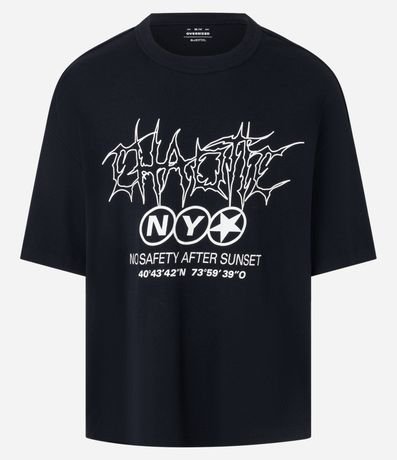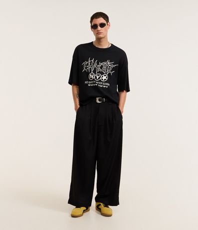 Ref: Camiseta masculina confeccionada em algodão certificado bci, peça no modelo oversized com gola redonda, manga curta com textura e estampa no lettering gothic.