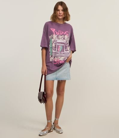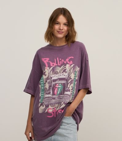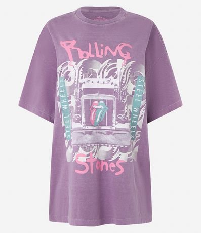 Ref: T-shirt oversized confeccionada em algodão mais sustentável e com efeito estonado. A camiseta tem gola redonda, mangas curtas e estampa frontal da banda inglesa Rolling Stones.