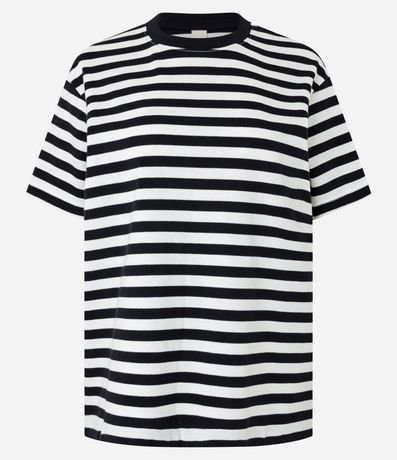Camiseta oversized de mangas curtas, confeccionada em algodão peruano, com listras horizontais. Este produto possui algodão certificado BCI em sua composição, sendo ambientalmente mais responsável.
