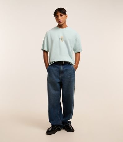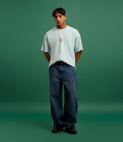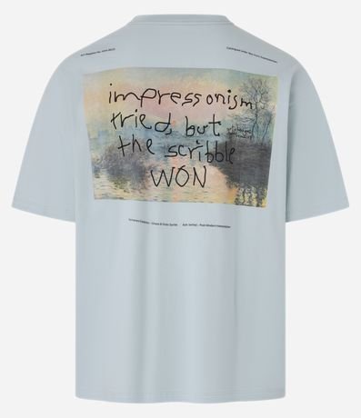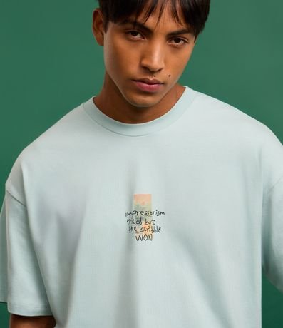 Ref: Camiseta masculina confeccionada em malhão mais sustentável com boas práticas ambientais, no modelo oversized. Possui gola redonda, manga curta, estampa lettering, artística.