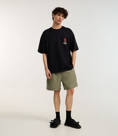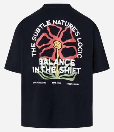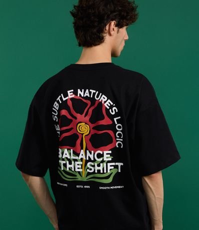 Ref: Camiseta masculina confeccionada em malhão mais sustentável através de boas práticas ambientais, no modelo oversized. Possui gola redonda, manga curta, estampa de flor e estampa lettering "Balance in the shift " frontais e traseiras.