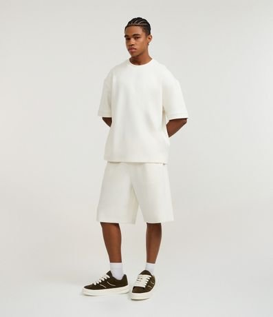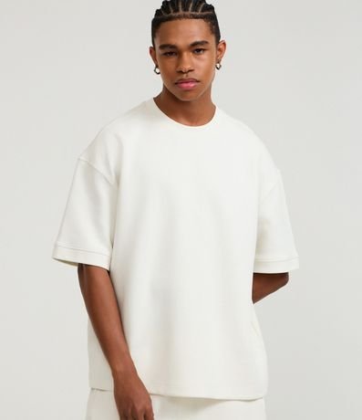 Camiseta masculina confeccionada em moletinho mais sustentável, no modelo oversized. Possui gola redonda, manga curta, cava deslocada e sem estampa.