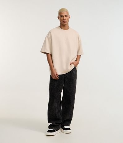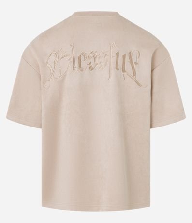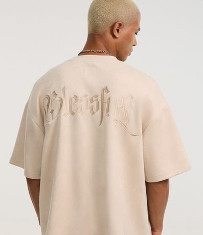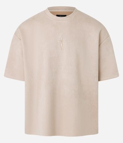 Ref: Camiseta masculina confeccionada em suede, no modelo oversized. Possui gola redonda, manga curta, bordado de cruz e bordado lettering.