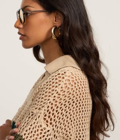 Camiseta Oversized em Tricô Texturizado e Gola Polo