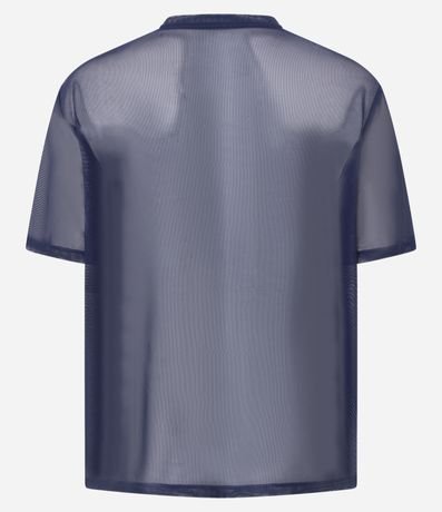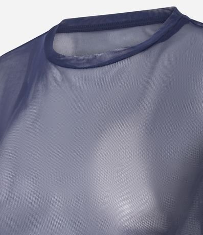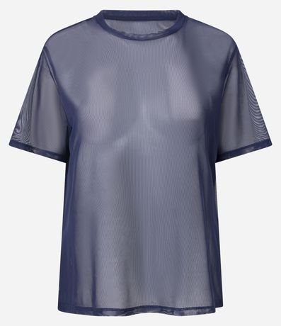 Camiseta esportiva, oversized com manga curta e confeccionada em microfibra de tule.
