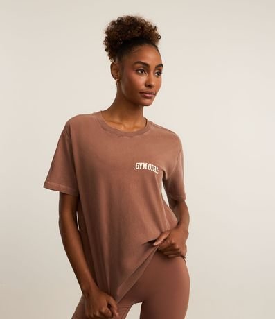 Camiseta Oversized Esportiva em Algodão Estonado com Estampa Gym Girl