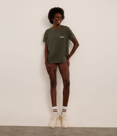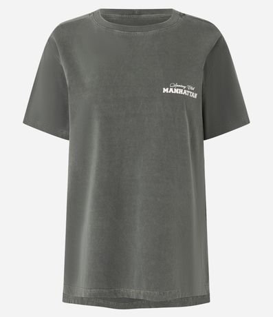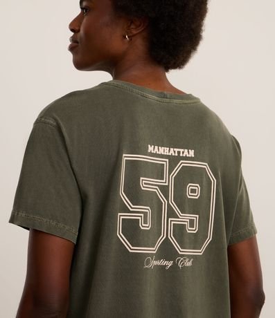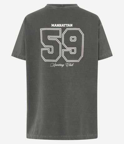 Ref: Camiseta oversized confeccionada em malha de algodão mais sustentável. A peça esportiva tem gola redonda, mangas curtas, fendinhas laterais, estampa frontal pequena, estampa traseira grande e efeito estonado.