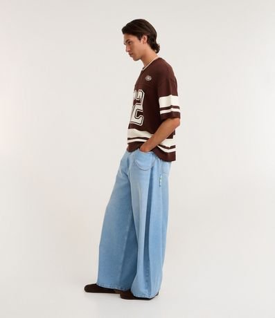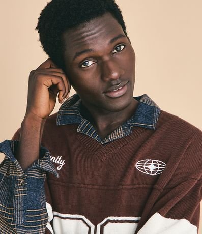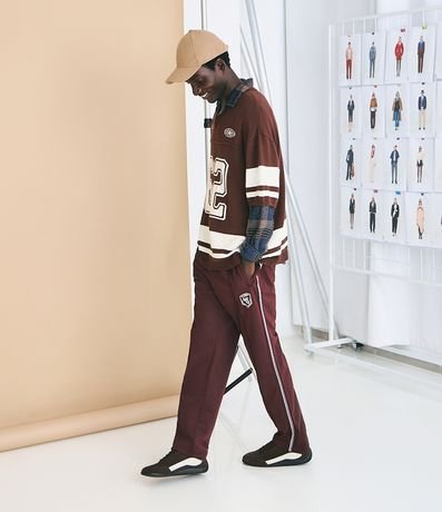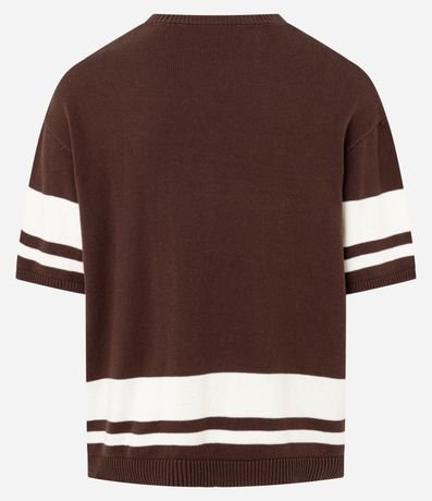Ref: Camiseta masculina com modelagem oversized esportiva, textura tricô, listras contrastantes, estampa frontal e bordado no peito. Confeccionada com processo mais sustentável e algodão certificado BCI. Estilo urbano garantido.