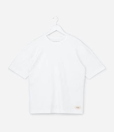 Ref: Camiseta infantil de modelo oversized, confeccionada em suedine de material e processo mais sustentáveis. Possui gola redonda, manga curta, etiqueta aplicada na barra e sem estampa.
