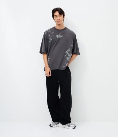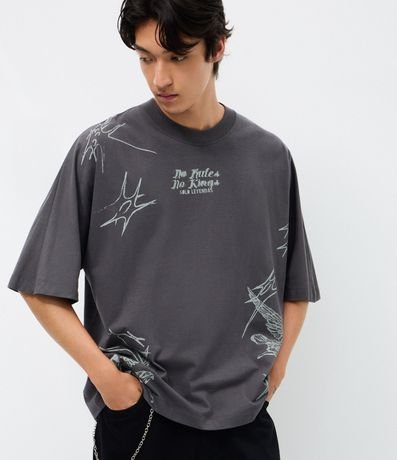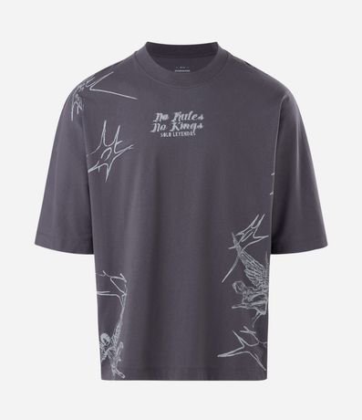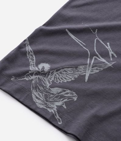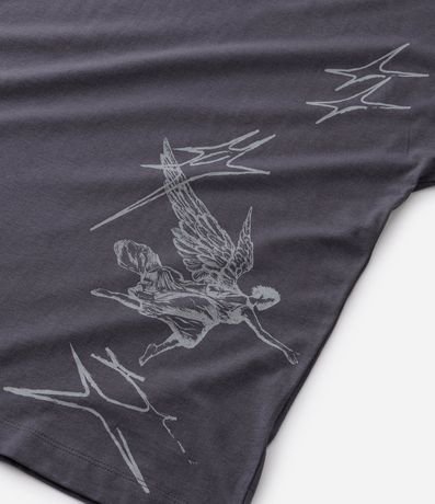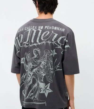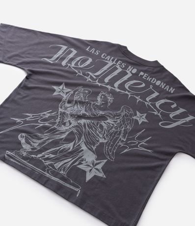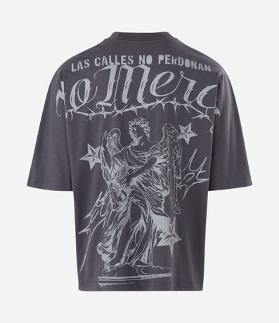 Ref: Camiseta masculina, confeccionada em algodão, gola redonda, manga curta. Peça no modelo oversized com estampa de anjo e lettering No Mercy.