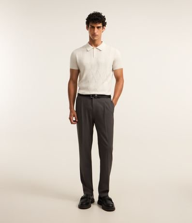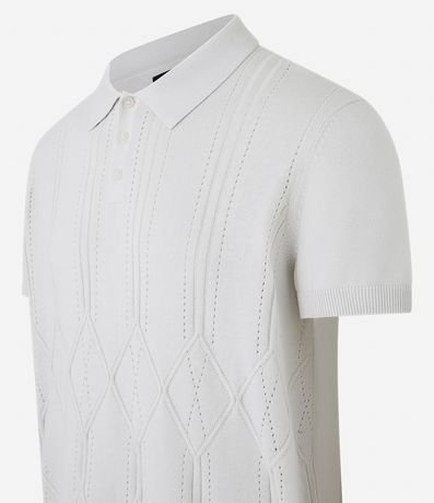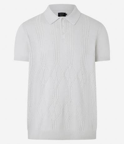 Ref: Camiseta polo confeccionada em tricô mais sustentável, gola tradicional com botões, manga curta e barra ajustada. Peça regular com textura em forma geométricas em alto relevo.