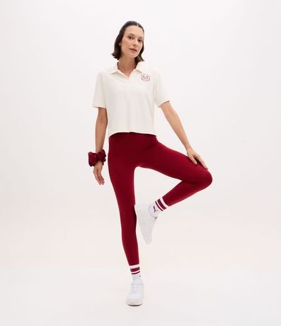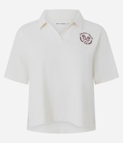 Camiseta polo feminina, confeccionada em poliamida, com mangas curtas. A peça também conta com bordado "athletic" no peito.