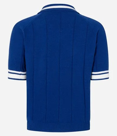 Ref: Camiseta feminina em tricô, confeccionada em viscose mais sustentável. Possui modelo polo, gola v, mangas curtas, viés contrastantes, lettering bordado no peito "cult athletic" e texturizada.