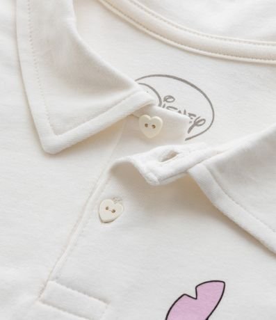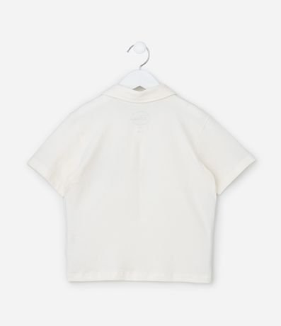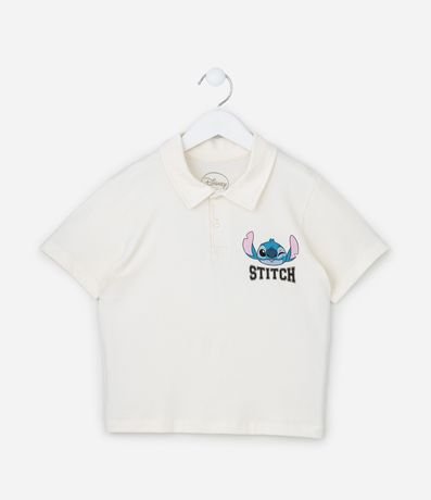 Ref: Camiseta infantil com gola polo e botões, mangas curtas e estampa do Stitch no peito. O item é confeccionado com boas práticas ambientais e algodão certificado bci.