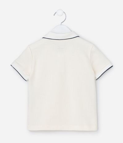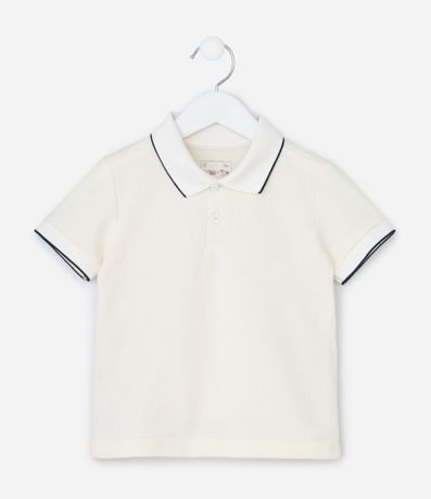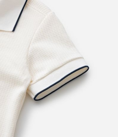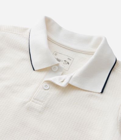 Ref: Camiseta infantil com gola polo, mangas curtas, texturizada e com detalhes de viés contrastantes nas mangas e gola. A peça é confeccionada com boas práticas ambientais e algodão certificado bci.