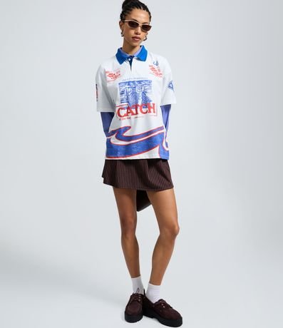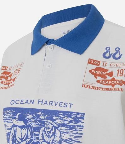 Camiseta polo em meia malha com estampa localizada inspirada no universo marítimo, trazendo visual moderno e estiloso. Possui gola contrastante, mangas curtas e modelagem oversized que garante conforto e personalidade. Confeccionada em algodão de certificado BCI, promovendo escolha mais responsável.